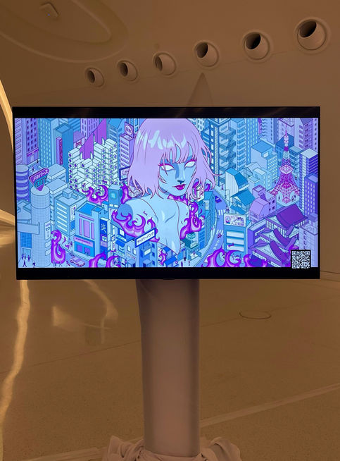 Burning AI is an artwork inspired by the architecture of Tokyo, and a reference to the book Burning Chrome. In an imaginary cityscape with a cyberpunk story that combines together different landmarks, the artificial intelligence is the central female figure surrounded by burning flames, a modern equivalent of 80s Chrome, and a reflection on our technological times.